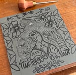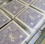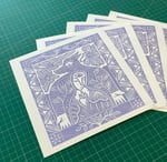 Este linograbado en color lila es especial por sus líneas finas y los detalles.